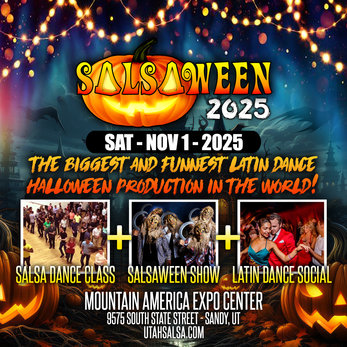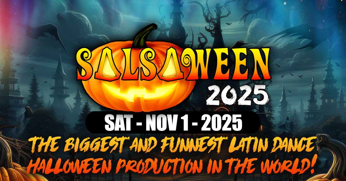 Witches, zombies, skulls and ghouls will crawl, run, dance and light up the stage on our very own take on Halloween. A Mix some hot Salsa dancing, some Sensual Bachata, throw a mix of Reggaeton, Tango, ChaCha and Rumba – and you will end up with the Biggest Latin Dance Halloween Production in the nation.